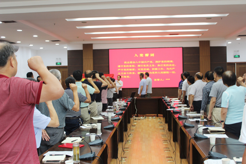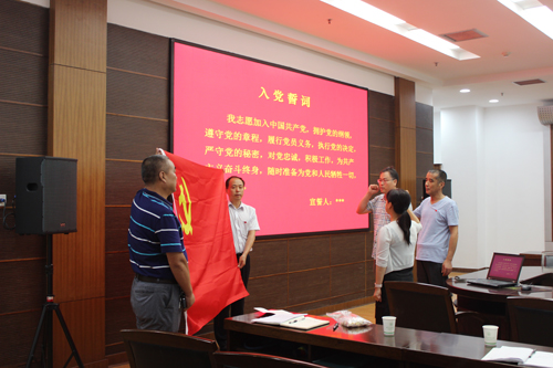 大会举行了新党员面向党旗宣誓与全体党员重温入党誓词活动。